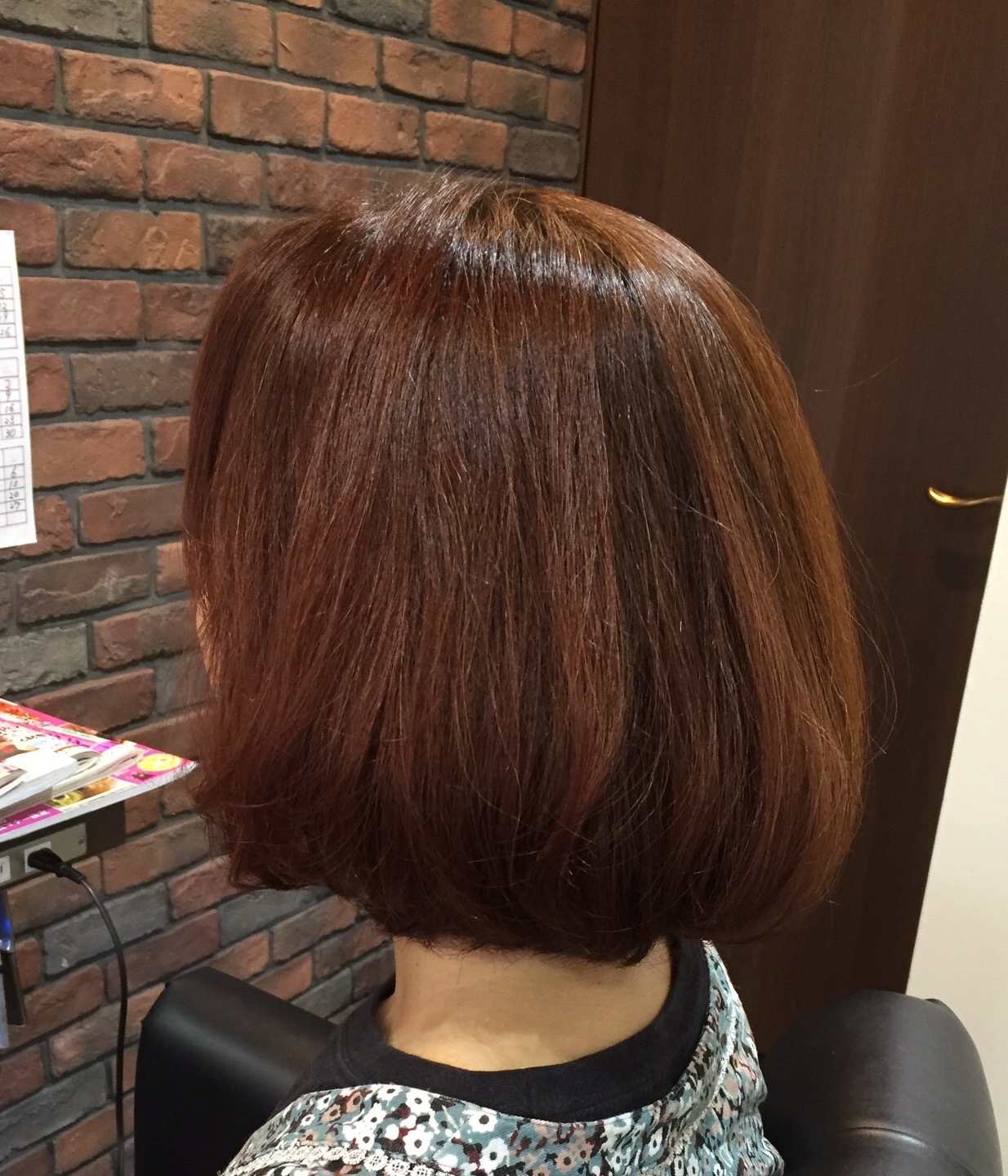 つむじまわりにクセが出てきたので、ストレートを提案。短時間で優しいお薬選定で自然で艶のある髪に変身★