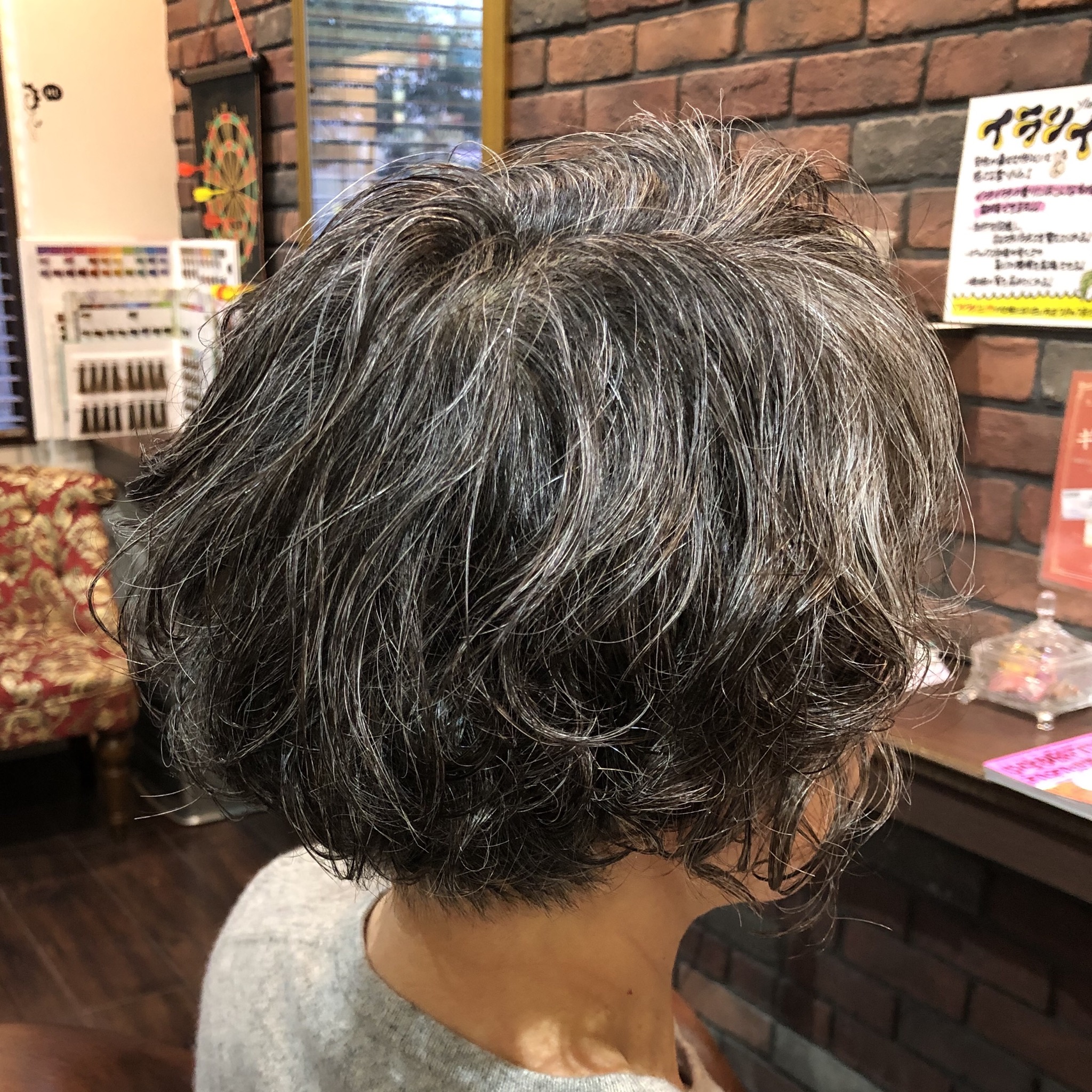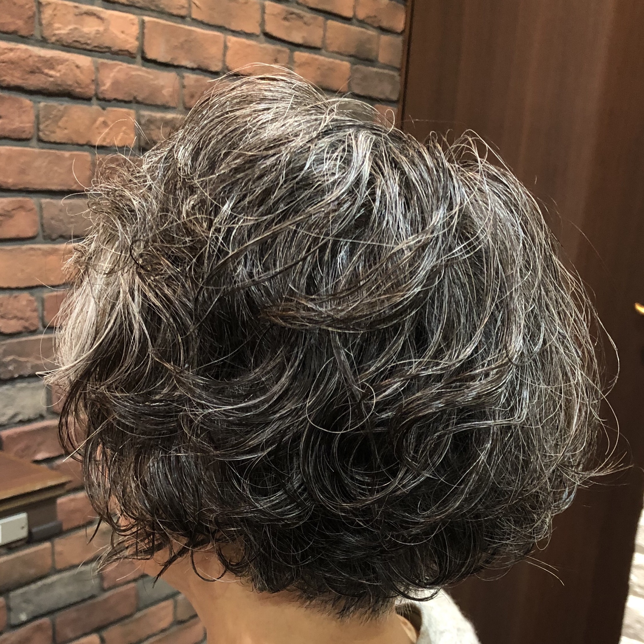 女性品のあるグレイヘアにパーマ